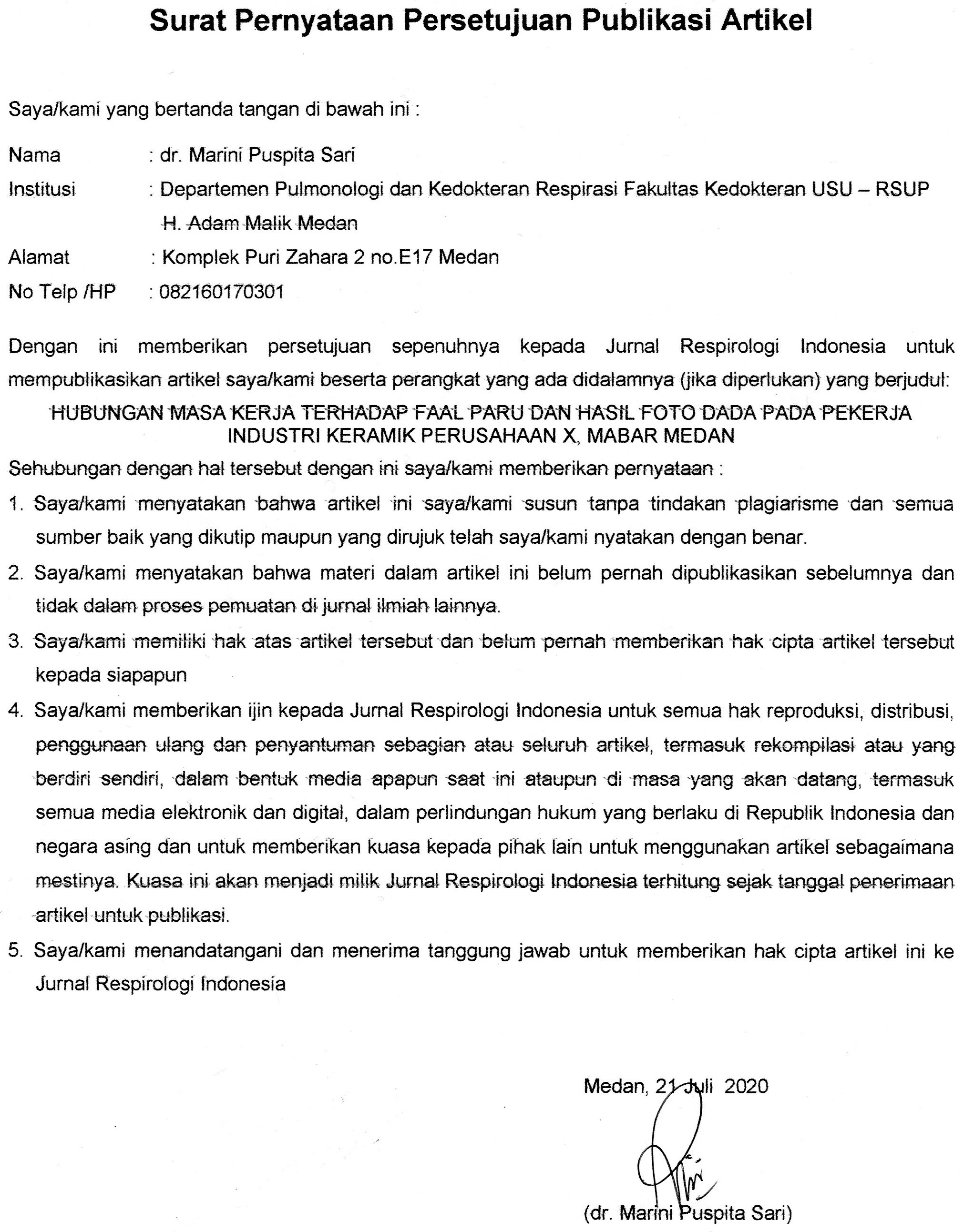 - Articles are published electronically for open access and online for educational, research, and archiving purposes. Jurnal Respirologi Indonesia is not responsible for any copyright issues that might emerge from using any article except for the previous three purposes.